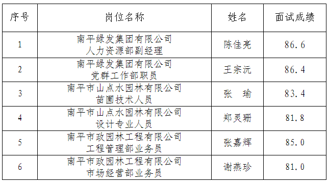 根據《南平綠發集團有限公司招聘公告》,我集團公司面向社會公開招聘工作已經結束。現將擬錄用人員名單予以公示。